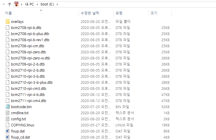 이제 완료되면 부트 폴더를 확인할 수 있습니다. 윈도우(Windows) 운영체제에서는 부트 폴더가 자동으로 마운트 되며, 용량이 256MB라고 나오네요. 이제 이러한 부트 폴더에 환경 설정 파일을 넣어서 라즈베리파이가 특정 환경에 맞게 부팅되도록 만들 수 있습니다.