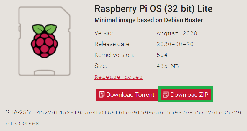 다음과 같이 최소한의 정보만 담은 Lite 버전으로 OS를 설치하여 사용할 수 있습니다. [Download ZIP] 버튼을 눌러 다운로드를 진행합니다. 대개 3분~5분 정도면 다운로드가 완료되며, 압축된 파일은 500MB가 안 되지만 실제 이미지(image) 파일은 2GB 정도입니다.
