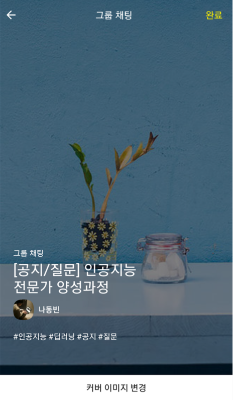 이어서 채팅방의 커버 이미지를 설정할 수 있다. 이 커버 이미지는 새로운 오픈채팅방을 만들 때마다 자동으로 변경된다.