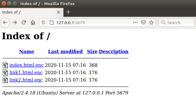 그러면 각종 웹 파일들의 확장자가 .enc로 변경되며 암호화됩니다.