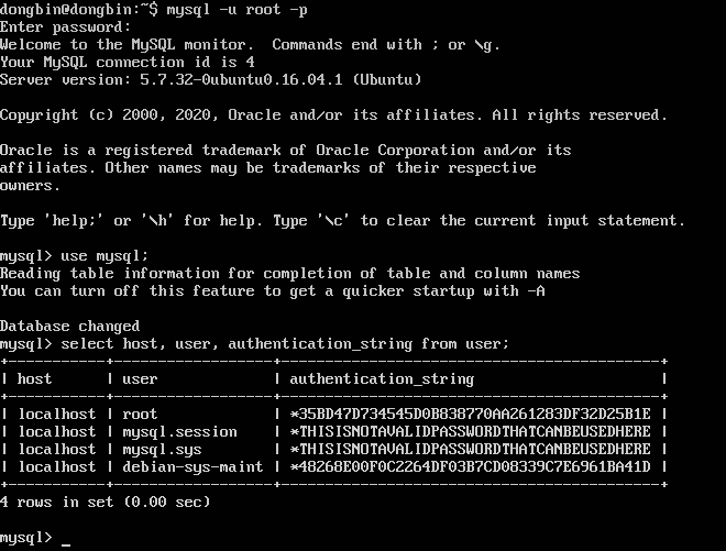 이후에 MySQL에 접속하여 간단히 설치된 내용을 확인합니다.