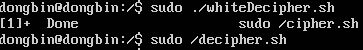 Guest OS에서는 whiteDecipher.sh 스크립트를 실행하여 암호된 파일들을 암호 해제해 볼 수 있습니다.