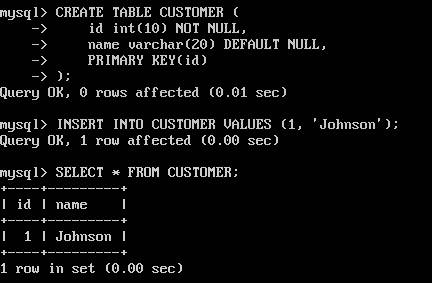 INSERT INTO CUSTOMER VALUES (1, 'Johnson');