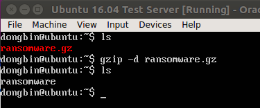 결과적으로 Guest OS에서 ransomware 파일에 실행 권한을 부여하고 실행합니다.