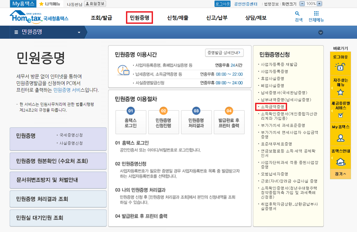 홈택스(Hometax)에서 간단히 연소득 확인하는 방법 (소득금액증명)