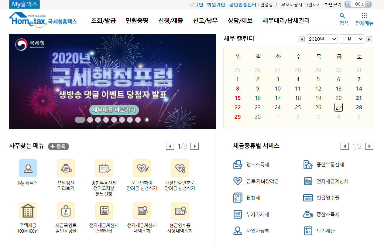 ▶ 홈택스(Hometax) 웹 사이트 주소: www.hometax.go.kr/