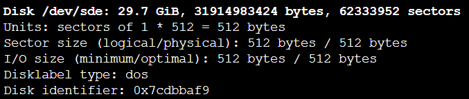 이후에 SD 카드를 컴퓨터에 연결한다. fdisk -l 커맨드를 이용하여 다음과 같이 SD 카드의 블록 장치를 확인할 수 있다. 필자의 경우 /dev/sde이다.