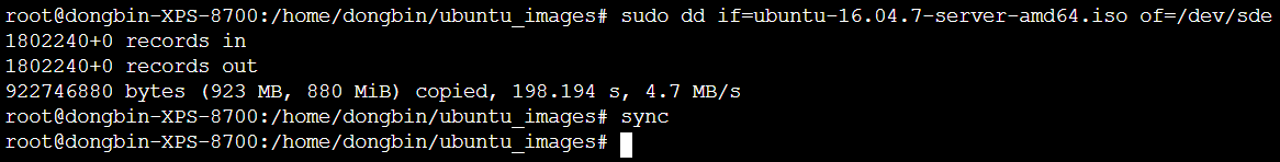 sudo dd if=ubuntu-16.04.7-server-amd64.iso of=/dev/sde