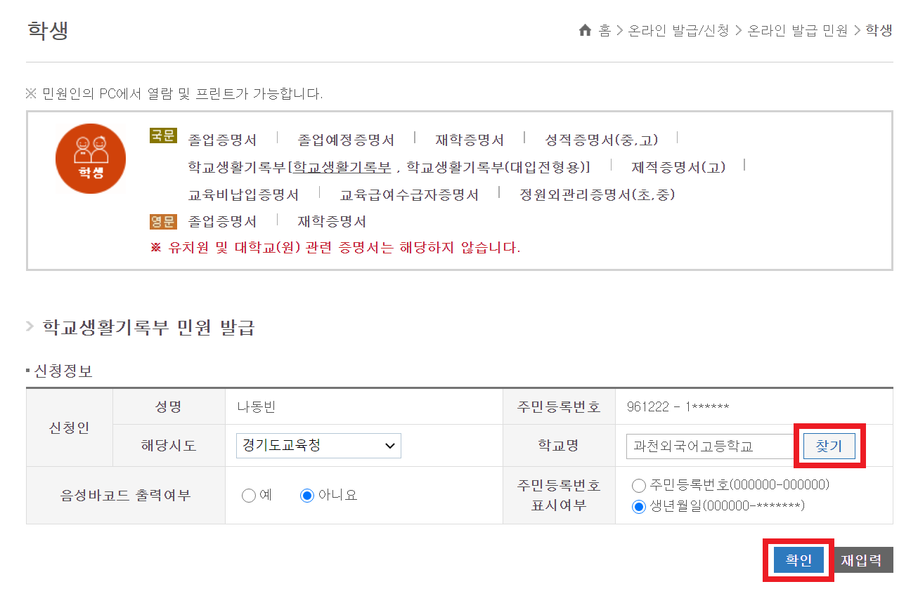 고등학교 생활기록부를 인터넷으로 발급받아 PDF로 다운로드하는 방법