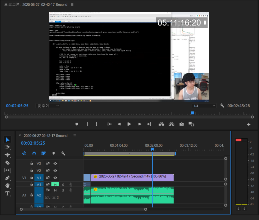 결과적으로 7시간짜리 동영상을 2분 45초짜리 영상으로 압축(빠르게 감기)한 영상을 제작할 수 있었습니다.