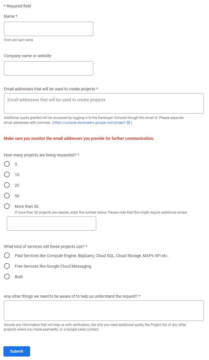 3. 이메일 주소: 요청(request)을 작성하고 있는 구글 계정을 넣는다.