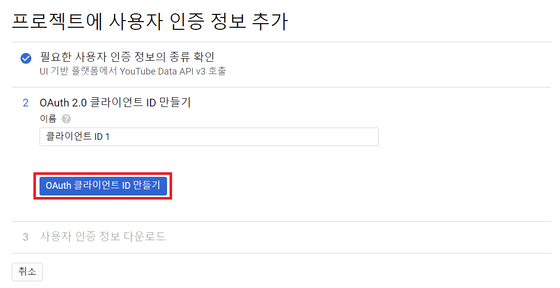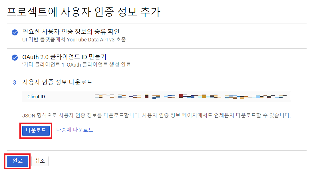 ▶ 클라이언트 ID 생성 및 사용자 인증 정보 다운로드
