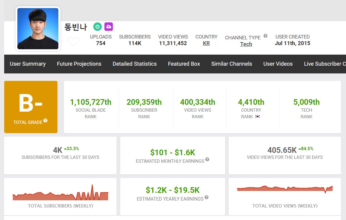 ▶ 소셜 블레이드(Social Blade): socialblade.com/