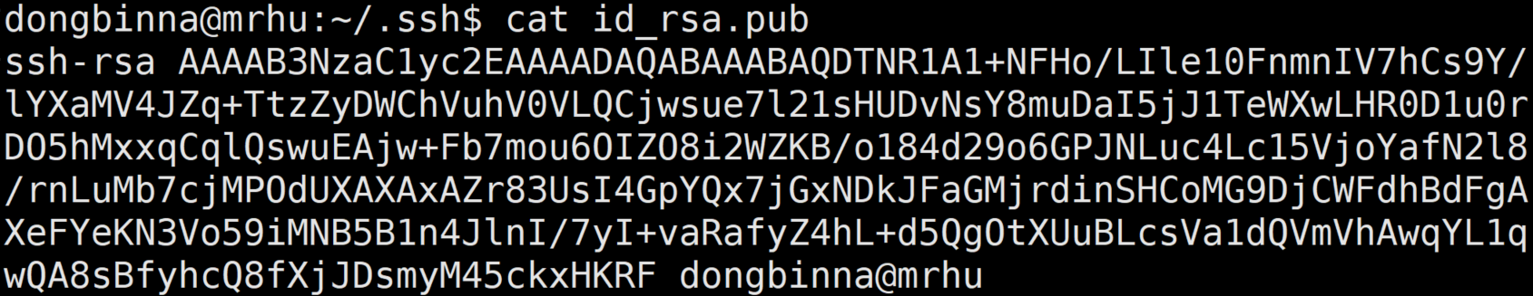 이제 리눅스에서 자신의 홈 디렉터리(home directory)에 다음과 같이 개인키와 공개키가 생성된다.