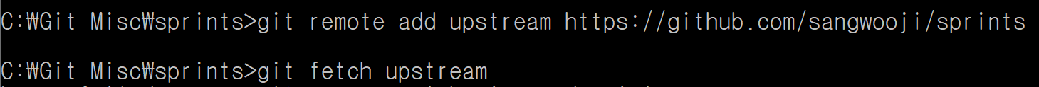 이후에 upstream을 추가하고 fetch를 진행한다.