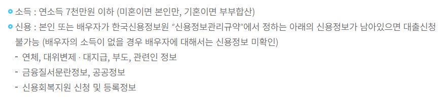보금자리론은 기본적으로 미혼(결혼 안 한 사람)도 신청할 수 있다는 점이 장점이다. 예를 들어 만 30세 미만의 돈을 많이 버는 젊은 미혼들도 보금자리론을 이용해 대출을 받을 수 있는 것이다. 참고로, 신혼가구의 경우 조금 더 소득 제한이 널널한 편이다.
