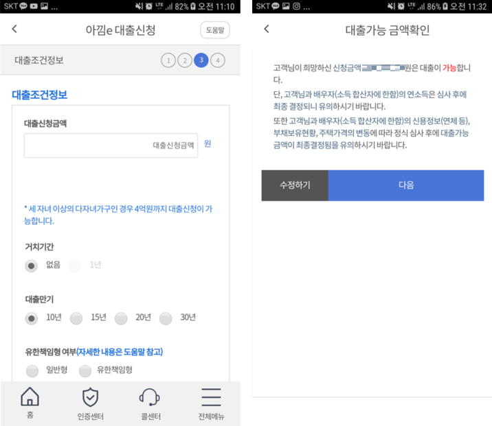 이제 대출 신청서를 작성할 수 있다. 홈페이지에서 직접 대출을 신청할 수 있고, 혹은 스마트주택금융 앱을 이용해 대출 신청서를 작성할 수 있다. 필자는 스마트주택금융 앱을 이용했는데, 이 경우 스마트 폰에 공인인증서(공동인증서)가 있어야 한다. 개인적으로 전반적인 과정은 크게 어렵지 않았다.
