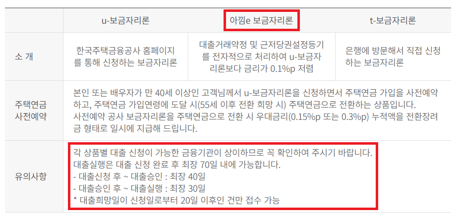 또한 보금자리론 상품 소개 페이지도 잘 읽어보자.