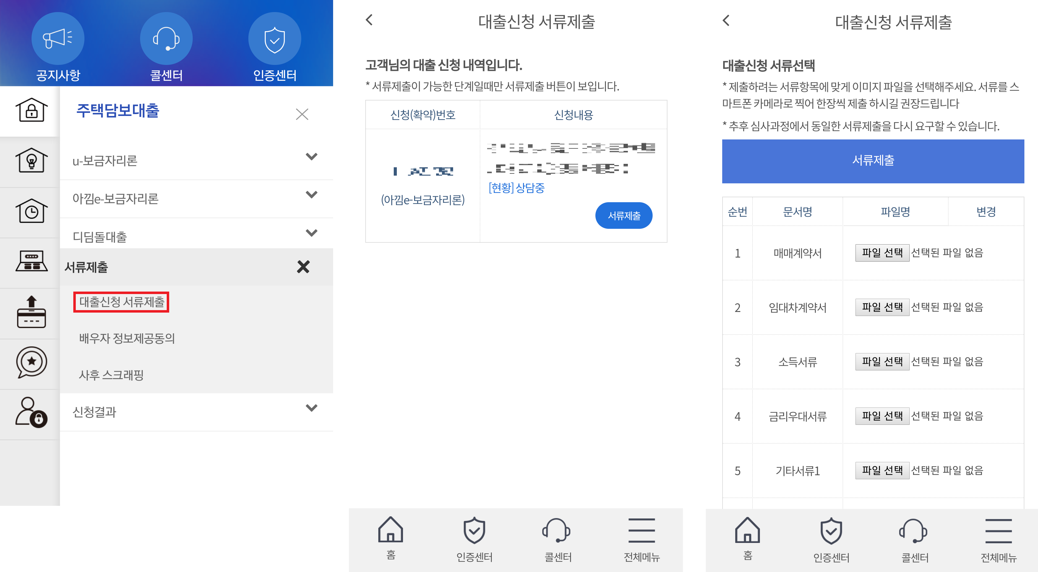 또한 아파트 매매계약서는 단순히 핸드폰으로 촬영한 사진 파일을 업로드했다. 이때 요구하는 대로 "매도인의 주민번호 뒷자리"를 보이지 않게 삭제한 사진 파일을 업로드했다. (참고로 그냥 그림판으로 주민번호 뒷자리만 슥슥 지워서 업로드했다.) 서류 업로드는 다음과 같이 스마트주택금융 앱을 이용하면 된다. 직접 관할지사에 방문하지 않아도 되기 때문에 굉장히 편리했다. 다만 앱으로는 이미지 파일(JPG, PNG 등)만 업로드가 가능했기 때문에, PDF 파일들을 PNG 파일로 변환한 뒤에 앱으로 업로드했다.