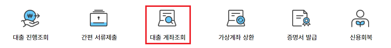 다음과 같이 [대출 계좌조회]에 들어간다.