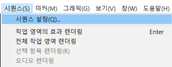 따라서 시퀀스(Sequence)의 프레임(Frame)의 해상도 또한 변경해 줄 필요가 있다. 따라서 [시퀀스] - [시퀀스 설정]으로 이동한다.
