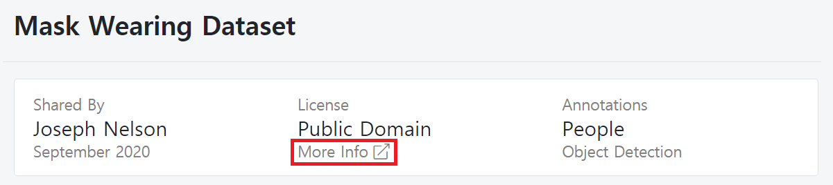 데이터셋에 관련한 정보를 확인하기 위해 [More Info] 버튼을 눌러볼 수 있습니다.