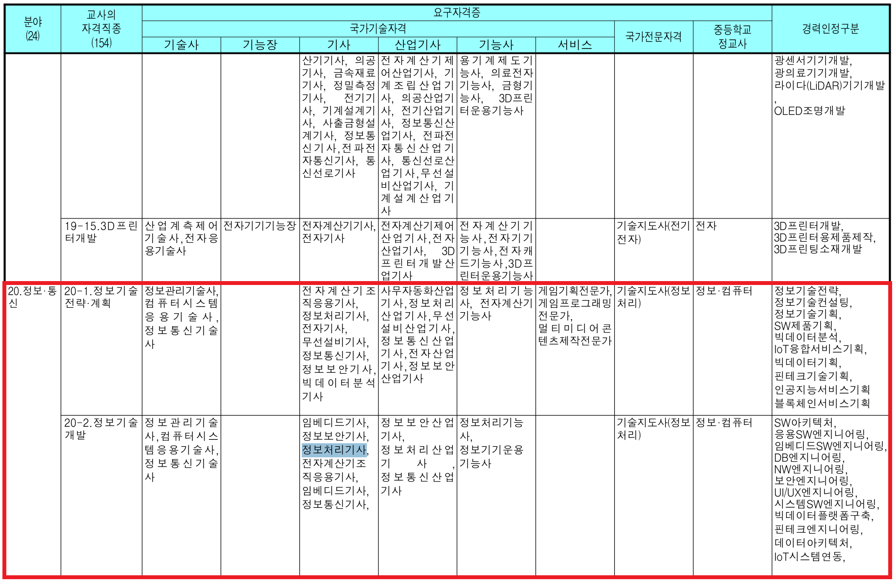 또한 [직종별 인정 자격]에 들어가보니까 정보처리기사가 있으면 "정보기술개발"과 같은 자격 직종으로 인정을 받을 수 있다고 하네요.