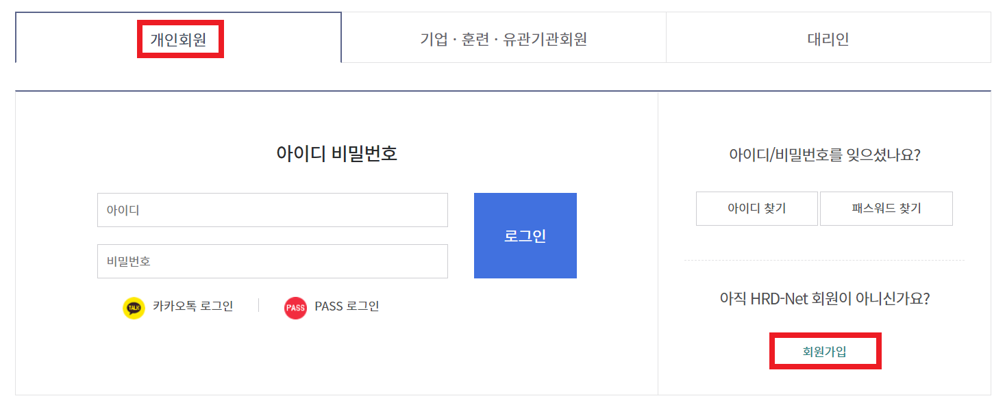 ※ 직업훈련포털 개인/일반회원으로 회원가입 ※