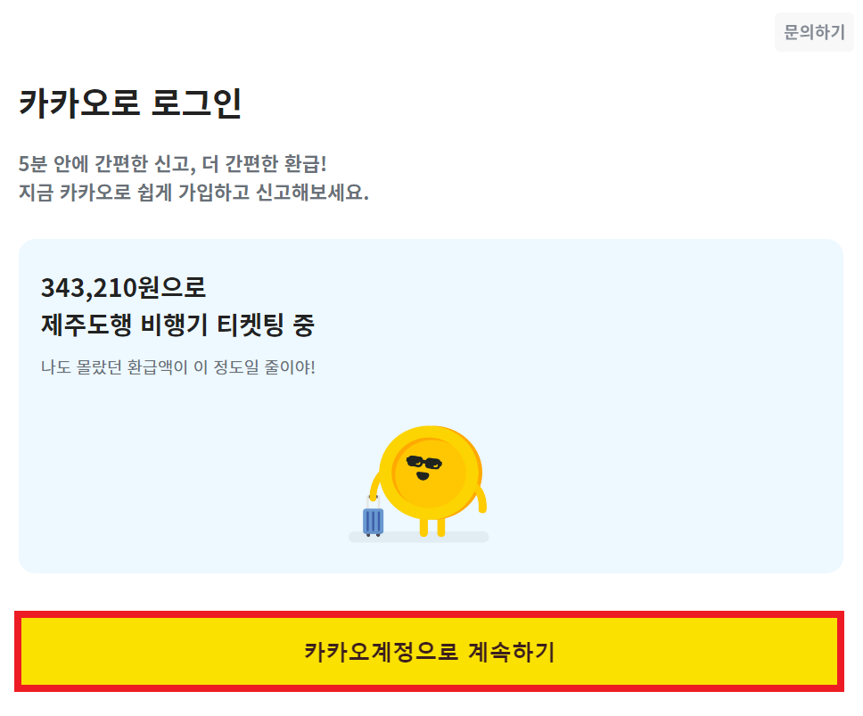 인증을 위해서는 기본적으로 카카오 로그인 기능을 사용한다. [카카오계정으로 계속하기] 버튼을 눌러서 카카오 계정으로 로그인을 진행할 수 있다.