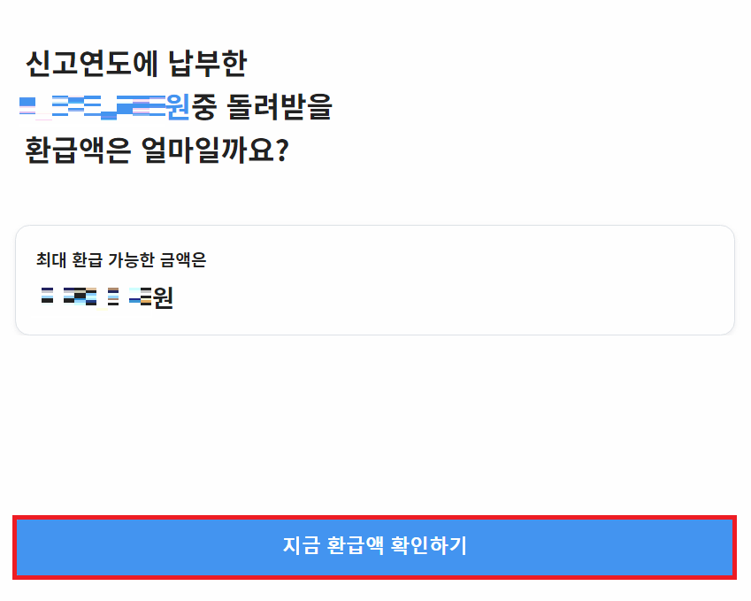이어서 [지금 환급액 확인하기] 버튼을 누르면 환급 금액을 확인할 수 있다.