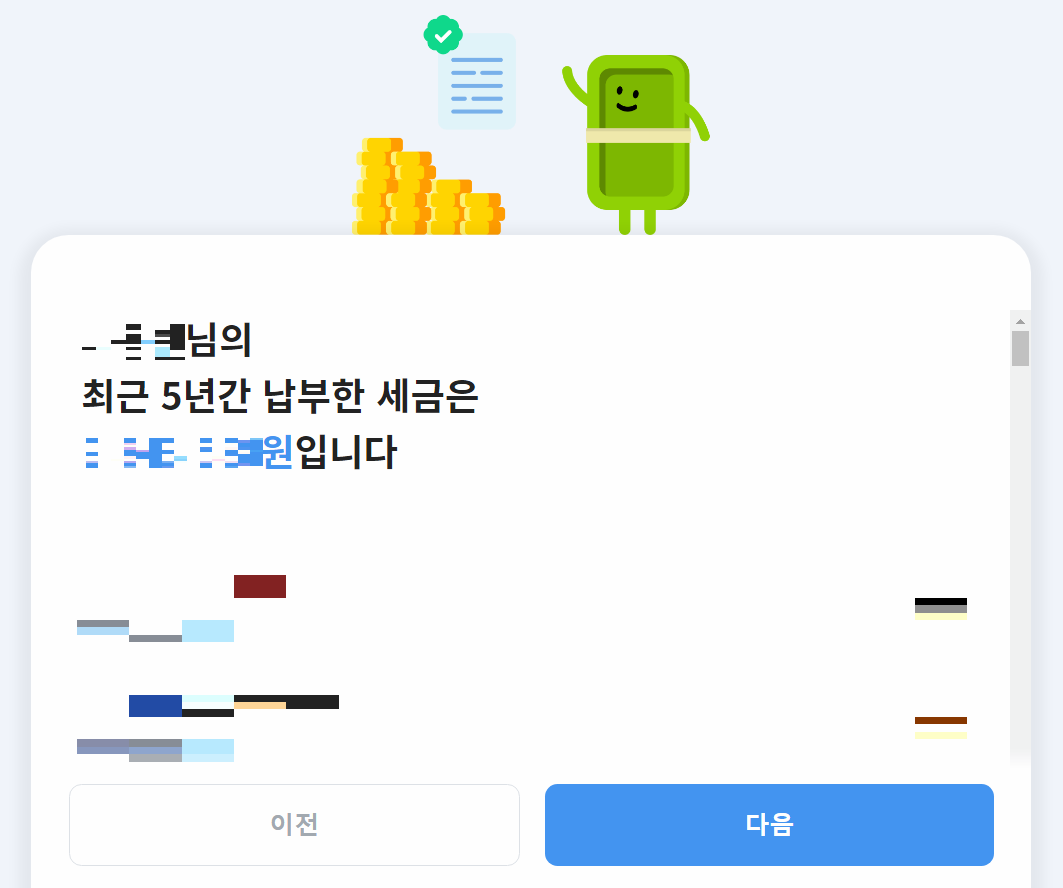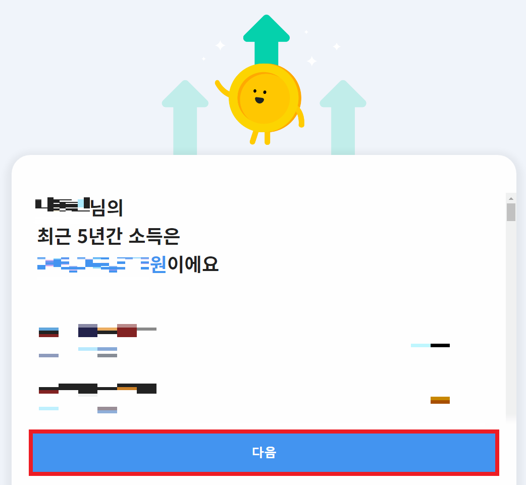 아무튼 인증이 완료되면, 다음과 같이 최근 5년간 소득을 확인할 수 있다.