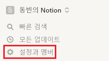 그리고 만약에 만들어진 워크스페이스(Workspace)를 삭제하고 싶다면, 삭제 방법 또한 간단합니다. 가장 먼저 [설정과 멤버] 탭으로 들어갑니다.