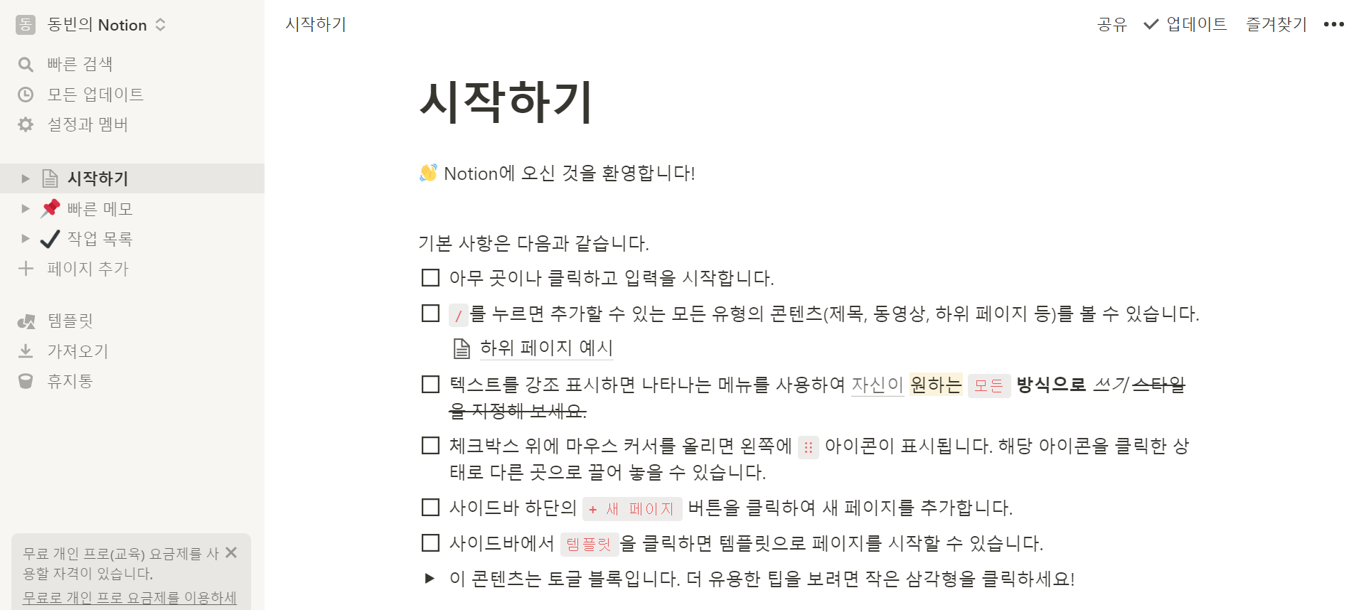 ※ 워크스페이스에 새로운 페이지 추가하기 ※