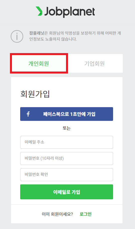 ▶ 잡플래닛(Jobplanet) 회원가입 경로: https://www.jobplanet.co.kr/users/sign_up