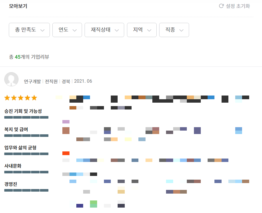 등록을 완료한 뒤에는 다음과 같이 원하는 기업의 리뷰를 확인할 수 있다.