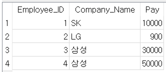 사원의 번호, 회사의 이름, 연봉 정보를 포함하고 있습니다. 즉, 어떠한 사원이 어떠한 회사에서 일을 하고 있는지에 대한 정보를 담고 있습니다.