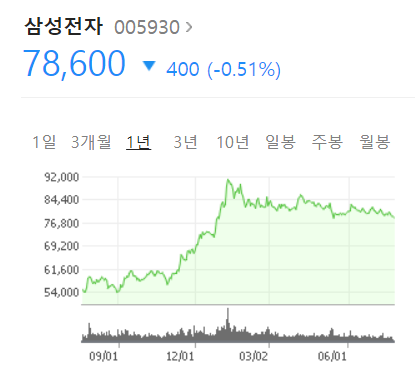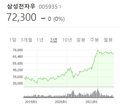 마찬가지로 네이버에 "삼성전자 우선주 주가"라고 검색하면 다음과 같은 그림을 확인할 수 있다.