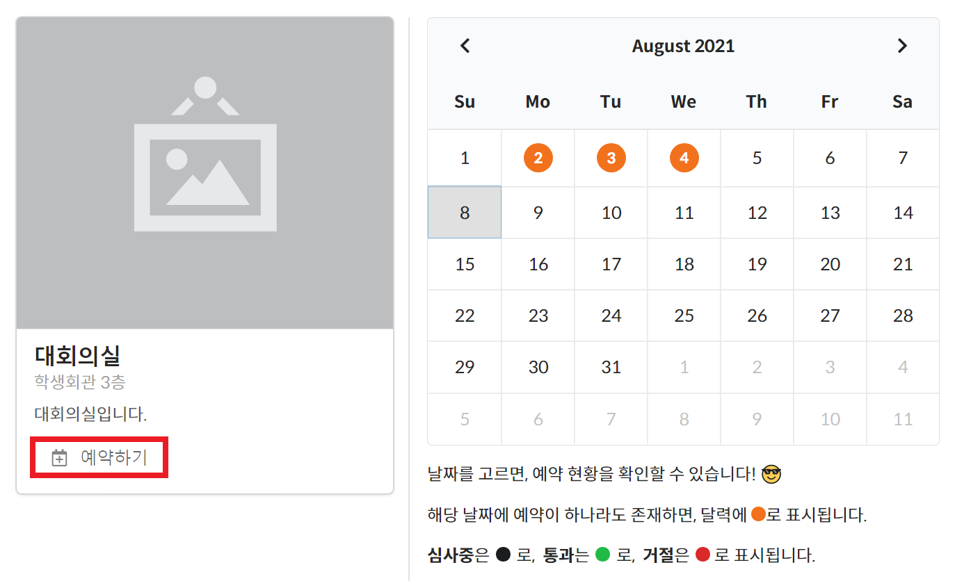 이후에 원하는 장소를 골라 [예약하기] 버튼을 누른다.