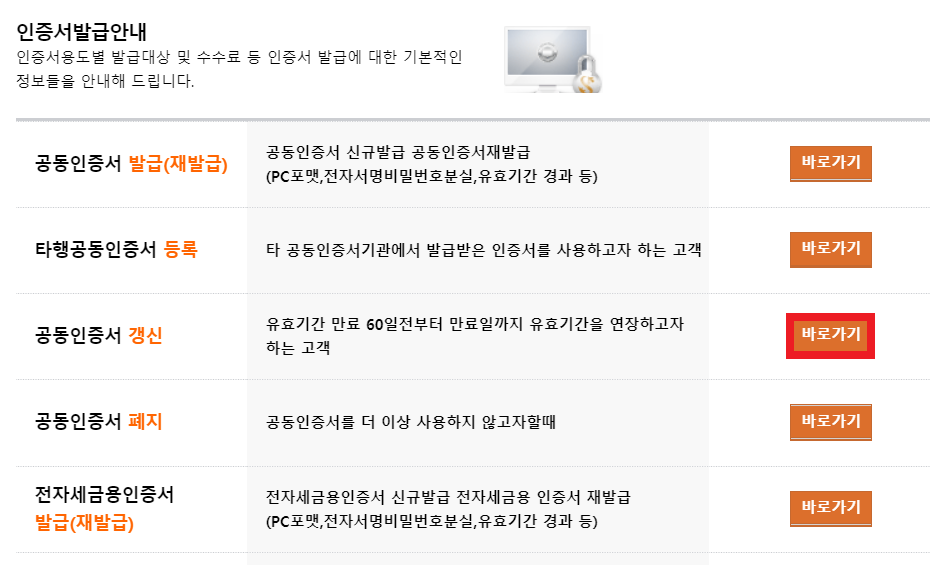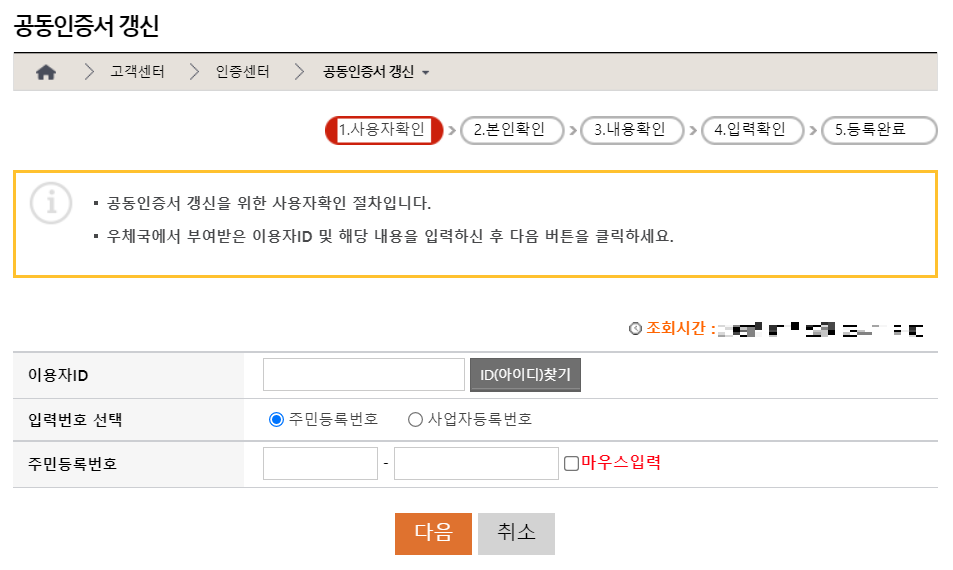 이후에 [공동인증서 갱신] 페이지로 이동한다.
