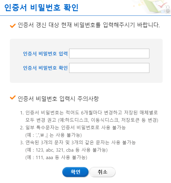 인증서 비밀번호를 입력하고, 인증서 유효기간 갱신을 완료한다.