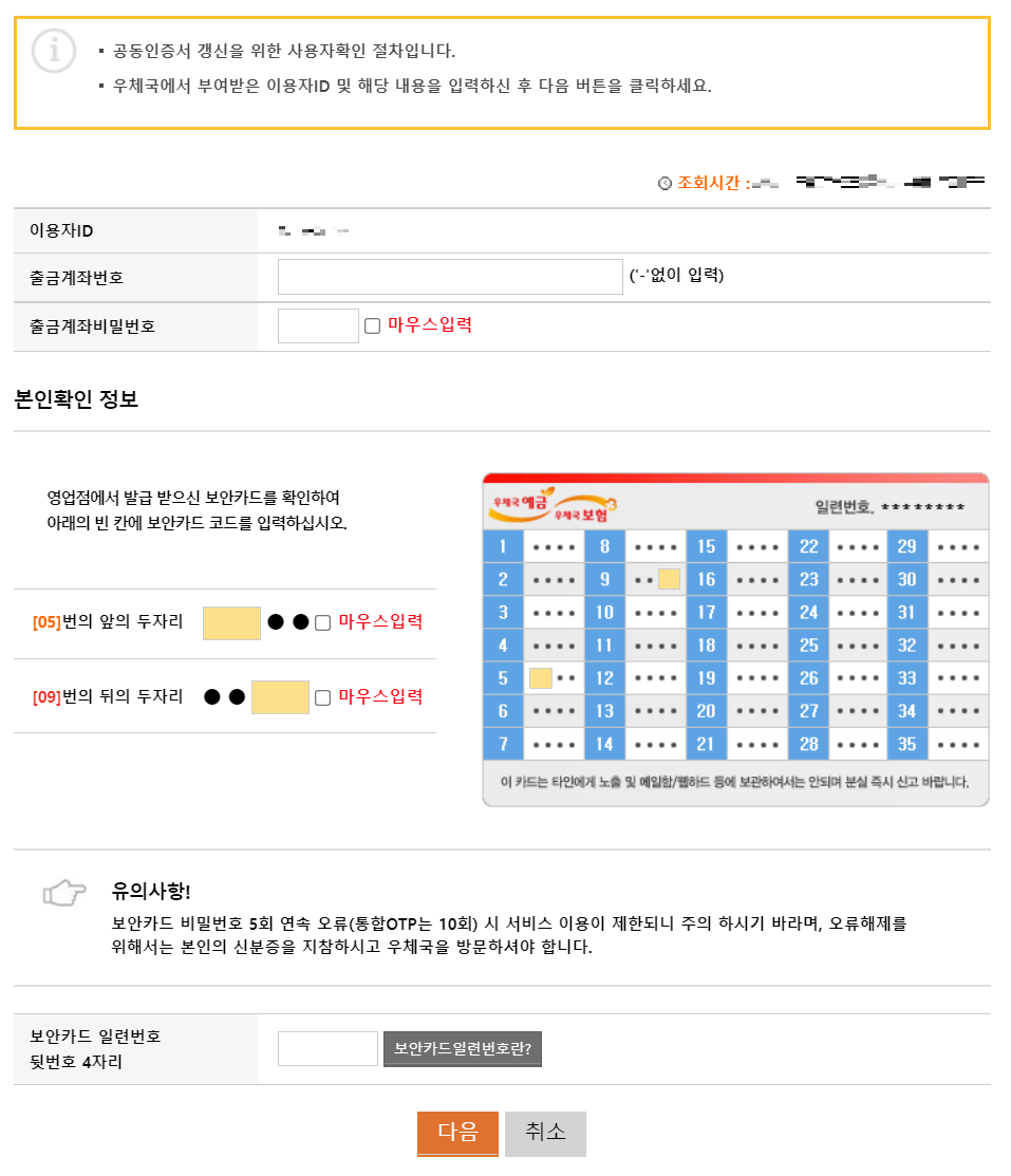 우체국 인터넷뱅킹 공동인증서(공인인증서) 유효기간 갱신하는 방법