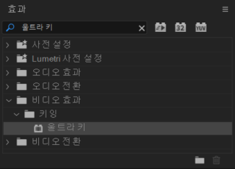 이제 크로마키 합성을 위해 [효과] 탭에서 [울트라 키]를 찾아 적용한다.