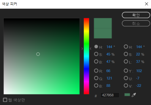 구체적으로, 필자의 경우 다음과 같은 초록색을 선택했다.