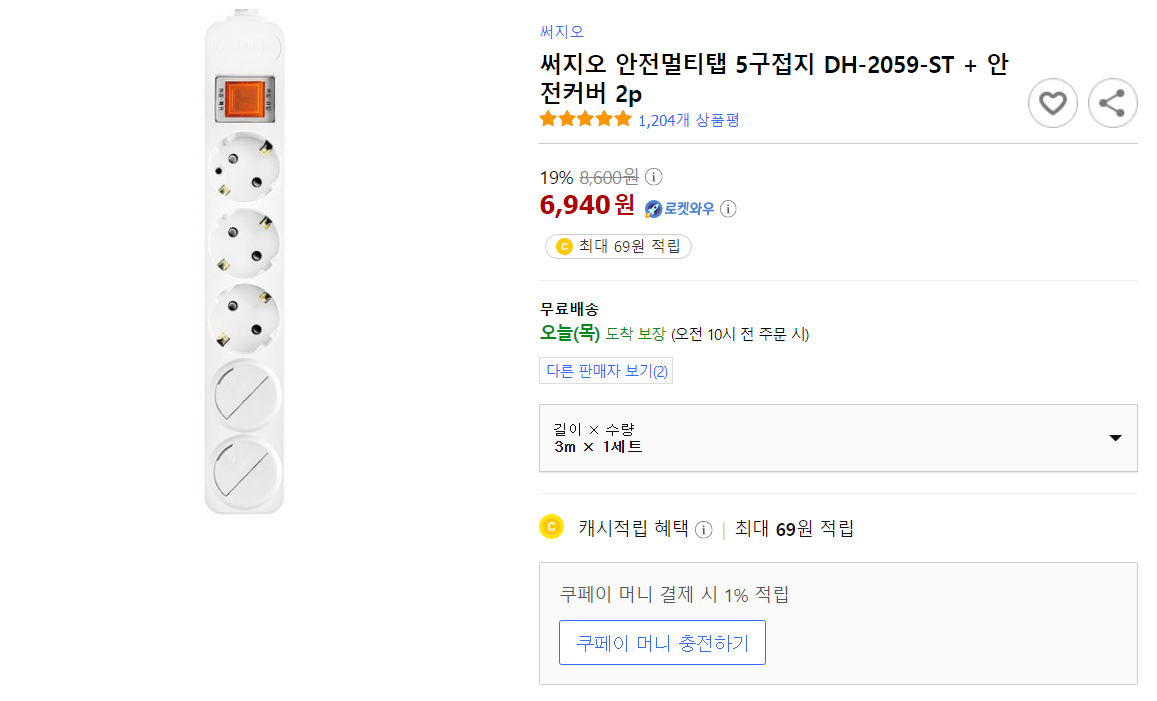 개인 컴퓨터(PC) 목적으로 사용할 멀티탭도 구매했다.
