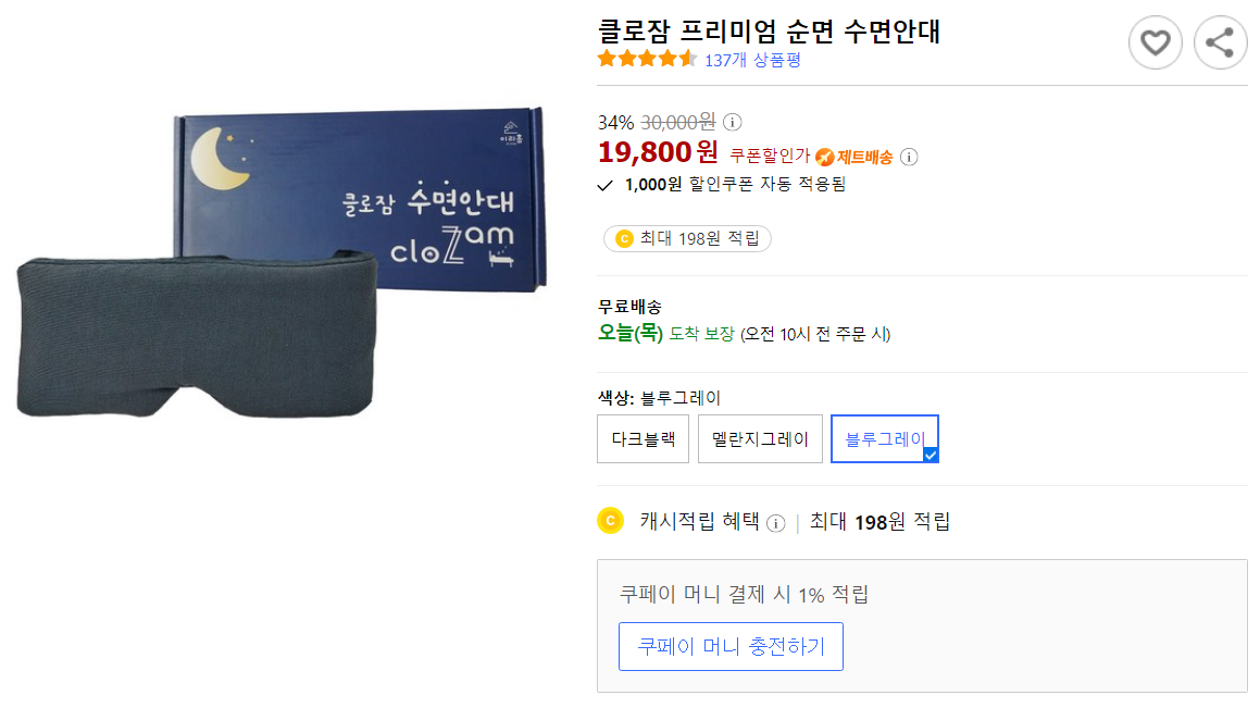 필자에게 수면 안대는 생존에 있어서 필수품이다. 그래서 구매했다.