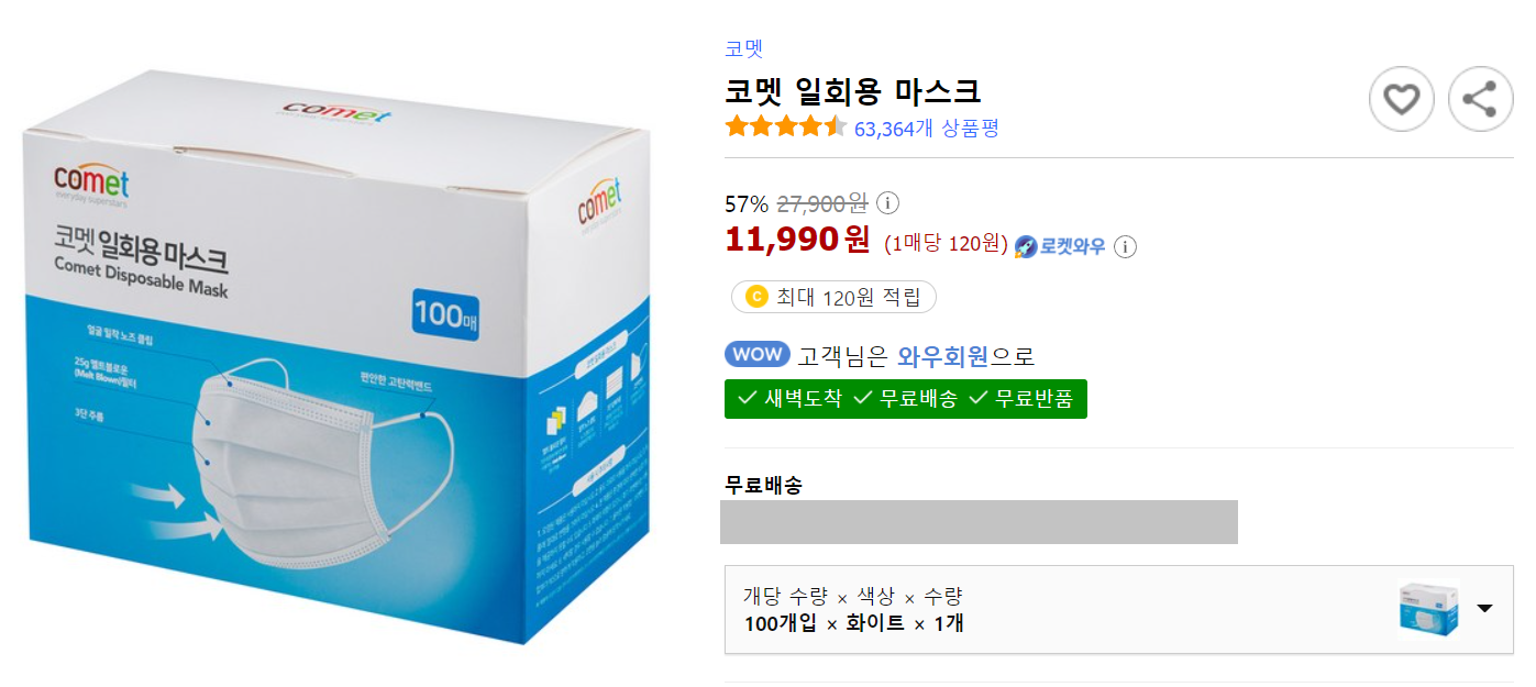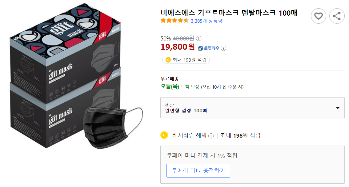 나갈 때마다 한 장씩 뽑아 사용하기 위해 마스크도 구매했다.