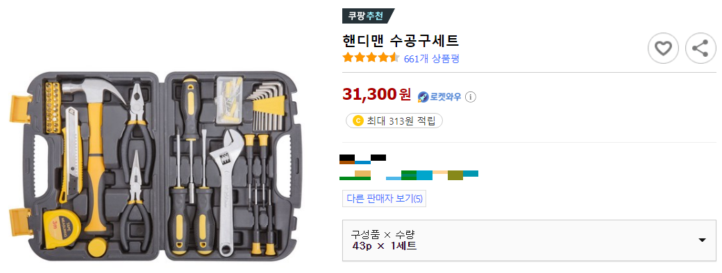 또한 필자는 쿠팡에서 핸디맨 공구세트를 약 3만 원에 구매했다.