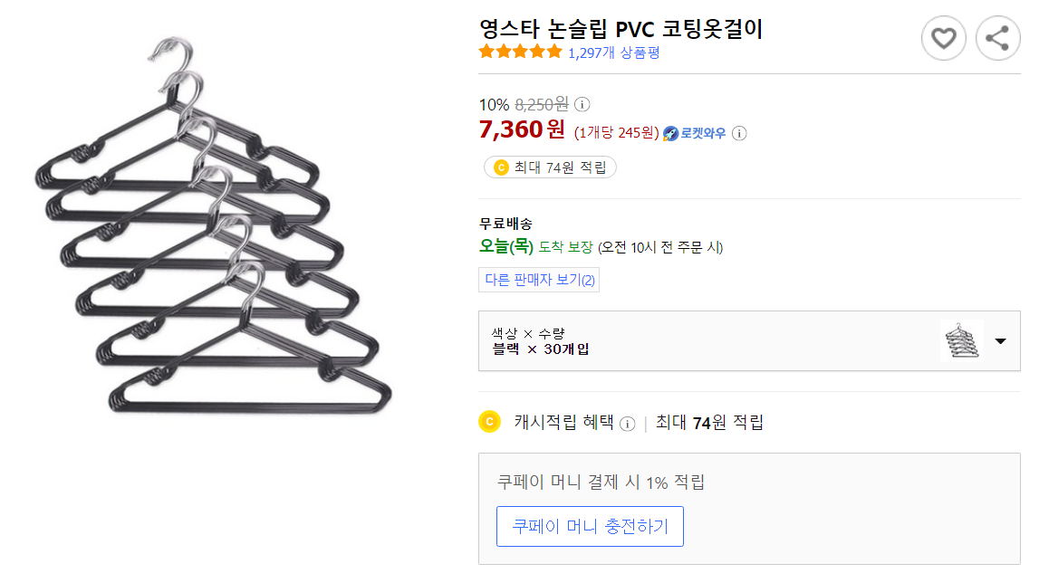 평소에 옷을 대충 던져두는 안 좋은 습관이 있어서, 옷걸이도 한꺼번에 많이 구매했다.