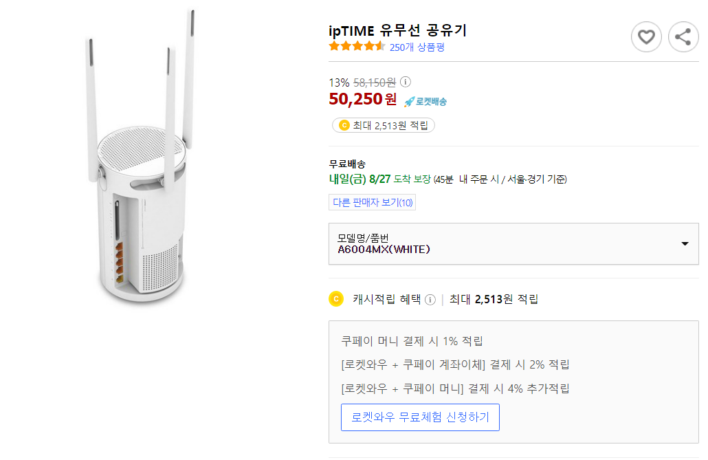 공유기는 지인으로부터 추천 받은 A6004MX를 구매했다. 기가비트를 지원한다. 필자가 원래 가지고 있던 공유기의 콘덴서가 폭발해 버리는 바람에 필수적으로 구매해야 했다.
