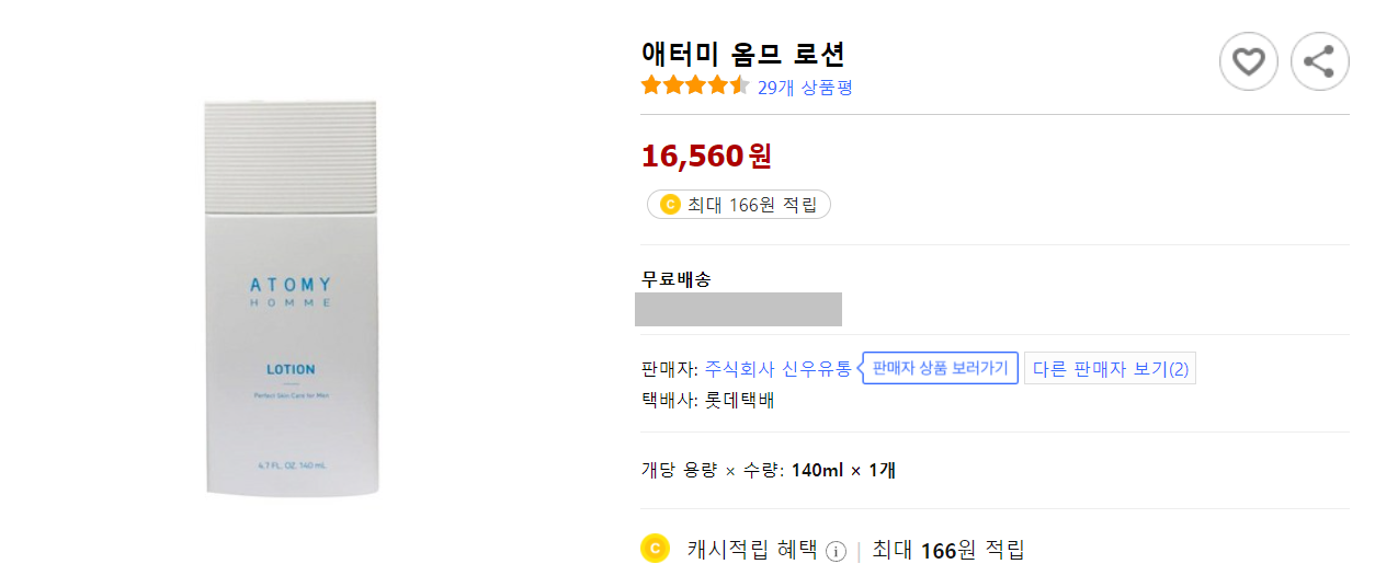 필자의 경우에는 애터미 옴므 로션과 수분 크림을 사용한다. 개인적으로 가장 잘 사용하고 있는 제품이라서, 한 번 살 때 대용량으로 엄청 많이 사놓는다.